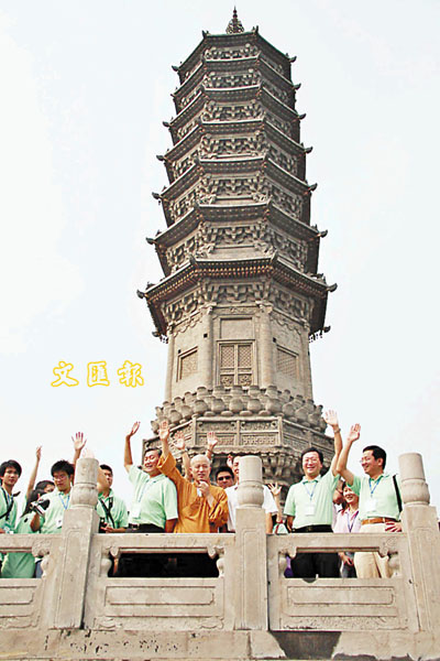 ■香港代表團成員在柏林寺塔下合影。 本報記者王海軍 攝