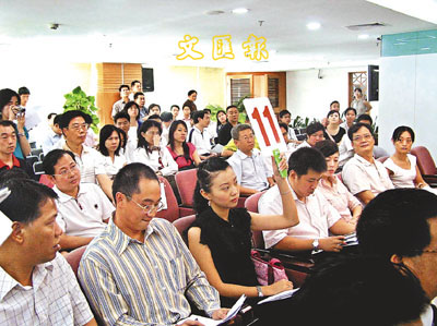 ■持牌11號的富力地產代表拍下兩幅珠城地皮,至今富力在珠城已擁有15個商業發展項目。 本報記者陳悅 攝