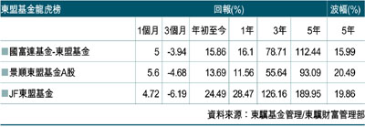 基金方面,在證監會認可的基金當中,本港只有三隻,當中JF東盟基金本年至今的表現達24.49%,大幅優於同儕。此基金榮獲標準普爾五星評級,可見管理不俗。