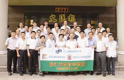 【本報訊】(記者 葉萃霖)港九塑膠製造商聯合會、香港金屬製造業協會、香港中小企經貿促進會一行共35人,日前應廣東省陽江市人民政府及廣東省投資促進局的邀請前往陽江市實地考察,為香港廠商尋找更好的設廠基地,轉移更好的投資環境,發掘更多的商機。