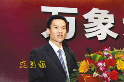 ■河北天成企業集團總經理賴海波在「萬象天成」項目國際推介會上發言。本報記者王海軍 攝