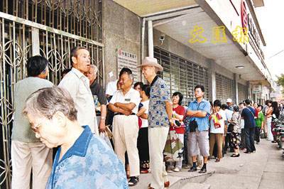 加息後首期憑證式國債昨向社會公開發行,發行總額400億元,並提高了票面年利率。其中,5年期的票面年利率提高到3.81%,比上期5年期憑證式國債利率提高了0.32個百分點。很多北京市民一早在銀行門口排隊搶購。 中新社