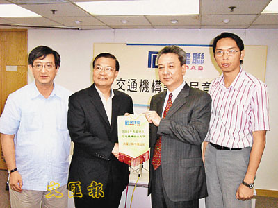 ■易志明(右2)代表天星小輪,接受民建聯頒發「2006年交通機構評分乘客調查大獎」。本報記者曾少妍 攝