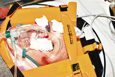 ■由看護推著輪椅的老翁被撞頭破血流送院。