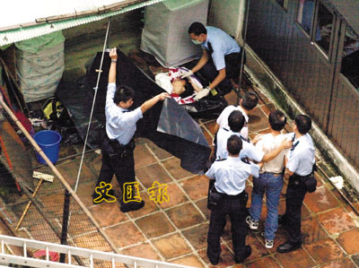 【本報訊】港島名校英皇書院一名男生,疑因考試成績不理想,新學年開學需留級重讀中三。他在開學日稱病缺課,昨晨臨上學前,被發現在西環寓所20樓天台跳樓自殺,倒伏一樓平台身亡;父母聞訊趕至,一度情緒激動企圖衝前撫屍,被在場消防員及警員勸止。其後,警員在男生住所發現一張寫著遺言的字條,透露自己成績欠佳而尋死。