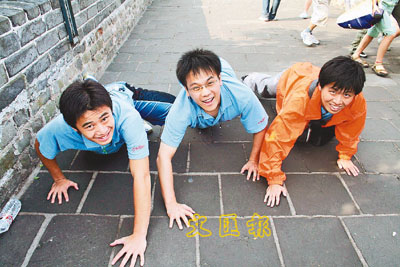 ■竟要爬著登長城?學員鬼馬,以凸顯長城有多陡峭!