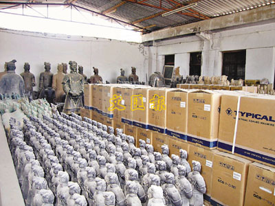 ■等待裝箱遠渡重洋的仿製兵馬俑。