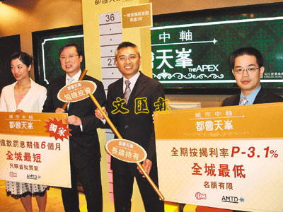 為增加客路,發展商夥拍銀行推出層出不窮的樓按付款優惠吸客。長實夥拍尚乘財富為旗下葵涌雍雅軒高層都會天峰單位推出全期P減3.1厘按揭計劃,即實際供款按揭利率為5.15厘,優惠相當於樓價5%。