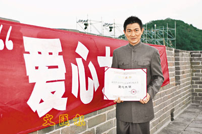 ■劉德華獲大會頒發「愛心大使」證書。