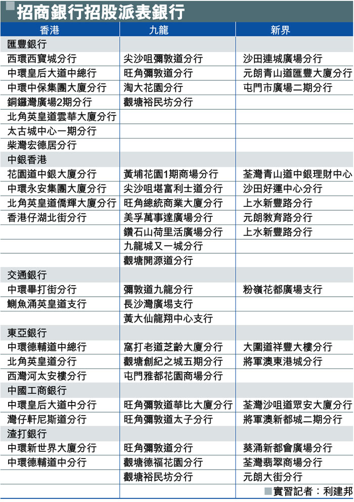 招商銀行招股派表銀行 (圖)
