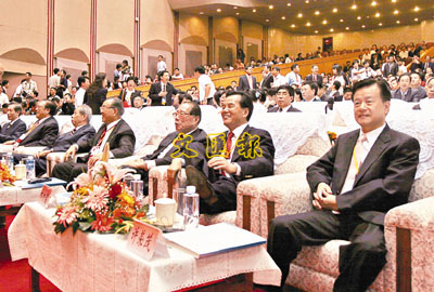 ■右起:許榮茂、林樹哲、林廣兆、黃保欣等香港福建社團領袖出席「海西論壇」。 本報記者米南 攝