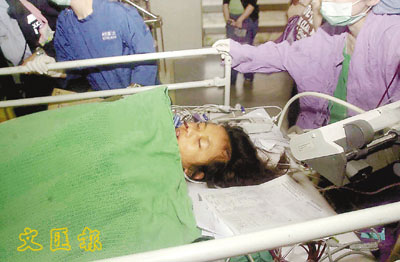 ■今年5月被越南非法入境者刺至重傷的少女送院。資料圖片