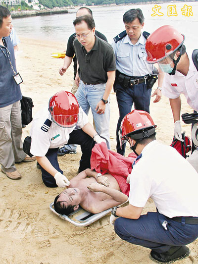 ■淺水灣溺斃的男子,由兄長認屍。本報記者溫瑞麟 攝