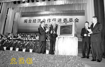 全國政協副主席羅豪才,福建省委書記、省人大常委會主任,閩台經濟合作促進委員會名譽主任盧展工,兩岸共同市場基金會董事長蕭萬長,台灣商業總會理事長王令麟共同為閩台經濟合作促進委員會揭牌。