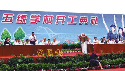 廈門市委常委、市政府常務副市長丁國炎在開工儀式上表示,將把「五緣學村」建成中國高水平、高品位的現代化一流學園,該學村的建成將有助推進當地乃至內地的基礎教育建設。