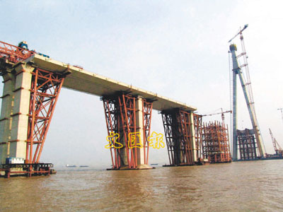 ■全長32.4公里的蘇通大橋,預計將在2007年底建成。 本報南京傳真
