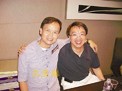■新地代理執行董事周國賢(右)於昨日參觀翔龍灣之示範單位及展覽廳,與發展商恆基代表林達民互相交流一番。