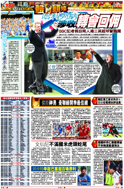 【綜合外電】英國廣播公司(BBC)就英格蘭流傳已久的轉會回佣醜聞所作的「明查暗訪」片段雖然尚未公開播放,但昨日的英國《世界新聞報》已經率先向大眾公開涉案的球會、領隊及有關職員的名單,當中現任英超球會樸茨茅夫主帥哈利列納、保頓主帥艾拿迪斯的兒子奇治及現任紐卡素助教奇雲邦特皆榜上有名。而3家英超球會保頓、樸茨茅夫與米杜士堡的高層人士已收到BBC方面的信件,指他們已經陷入回佣醜聞。