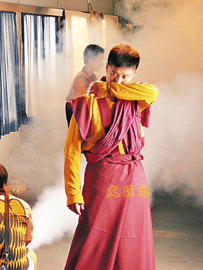 ■拍攝現場煙霧迷漫,天氣又悶熱,打得的吳京也感辛苦。