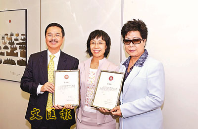 ■民政事務局副秘書長梁悅賢女士(中)頒發委任狀予周振基主席及陳劍聲委員。