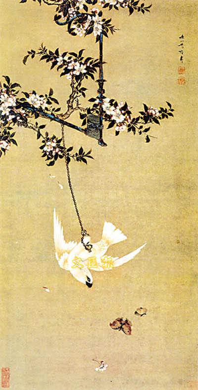 ■(清)胡湄《鸚鵡戲蝶圖》