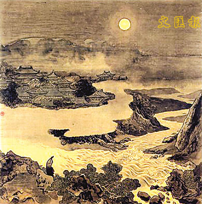 前四句言「悲」,「悲」中有「壯」。「江漢」是詩題,也是詩歌首句開頭用語,還是一個極易引發人們廣泛聯想的地名,寓含人在江湖,身不由己,漂泊流徙,四海為家之意,暗示了詩人客滯江漢的窘境。「思歸客」三字飽含無限辛酸,因為詩人思歸而不能,成為天涯淪落人,而且這種客居異地、顛沛流離的生活由來已久,仍將延續,似江漢流水綿綿不盡,如瑟瑟秋風哀哀不絕。「乾坤一腐儒」句,在「腐儒」前置一「乾坤」,頓覺天荒地老,風雲變色,人世滄桑,感慨萬千。此句包含「自鄙而兼自負」這樣兩層意思。天高地闊反襯出人生的孤單渺小,微不足道;浩浩長天,茫茫宇宙,人生與之相比的確是滄海一粟,短暫而脆弱,這與杜甫詩句「飄飄何所似?天地一沙鷗」的意味頗為相似。另外,「腐儒」一詞別有深意,杜甫身在草野,心憂社稷,孤忠永存,癡心不改,此等到老不衰、頑強不息的愛國思想,在常人看來,也許是冥頑不化,迂腐至極,可在老杜看來卻是恪守不疑,矢志不移。試想,如此不分窮達,不顧流俗,殫精竭慮,效命盡忠,乾坤之內,能有幾人?此腐儒頗有頂天立地,一往無前的志士風範。三、四兩句借景抒情,托物言志。詩人寫遠浮天邊的片雲,隱喻自己飄泊不定,居無定所的流浪生活;寫永夜孤懸的明月,暗示自己孤獨冷清,無依無靠的悲苦處境。片雲夜月與詩人同孤共遠,可想而知人在旅途的艱辛困苦,也可見出詩人思歸之情的急切、深沉。特別不可忽視的是,皎皎明月雖然遠在天邊,孤獨落寞,可是它的銀輝四射,朗照萬物讓天地生色,這分明又象徵著詩人效忠君王、憂慮民生的耿耿忠心,換句話說,詩人的一片忠心像高天孤月一樣皎潔明亮。王安石有詩云「春風又綠江南岸,明月何時照我還。」明月寄忠心,暗示詩人盡忠效命,重返朝廷的期盼。「明月」的隱喻意義與杜詩類同。