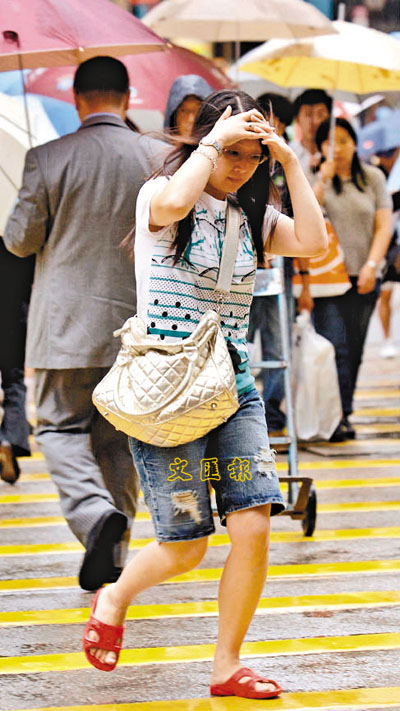 昨日連場大風雨,沒有帶備雨傘的女士狼狽避雨。本報記者李志樑 攝