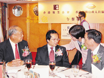 ■國家發展和改革委員會財政金融司司長徐林(左二)出席由香港報業公會和新聞行政人員協會舉辦的午餐會。本報記者攝