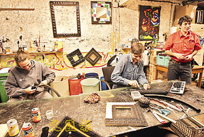 ■在廢物堆,不對,應該是在寶物堆中的意大利環境工程師平納(右)與藝術同儕繼續以手作展現創意。 美聯社