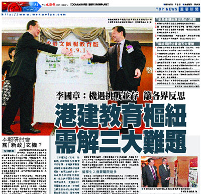 因應教育發展的趨勢,本報教育版於今年9月起擴版,李國章昨日出席主持本報「拓展香港教育樞紐前景研討會暨教育版擴版啟動禮」時,作出上述表示。他在致辭時指香港教育也需要「擴版」,將服務範圍擴大至整個亞太區域,吸引更多非本地生,在教育、文化及經濟方面,為香港帶來好處,也增加港生與外地學生的交流機會。