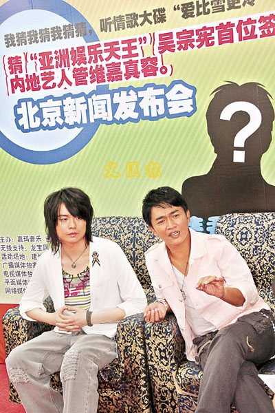【本報北京新聞中心記者奕峒電】台灣綜藝天王吳宗憲為了新愛徒不惜親自獻歌暖場,如此受寵的一幕出現在本月十三日在京舉行的新人管維嘉的新專輯發佈會上。近期以來一直被神秘面紗籠罩,繼周杰倫之後又一吳宗憲力捧的新人管維嘉終於帶著第一張專輯《愛比雪更冷》出現在大家面前,這次吳宗憲大張旗鼓的簽約新人管維嘉,口出豪言毋懼周杰倫。