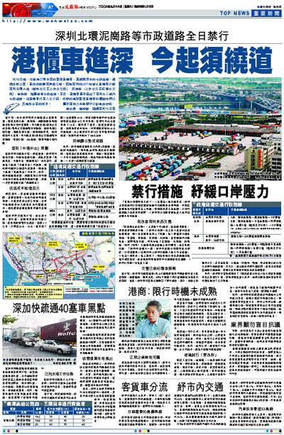 從16日起,從皇崗口岸來深的香港貨櫃車,需繞開原來的市政道路,通過接駁工程,直接接駁廣深高速公路。因為深圳將24小時禁止貨櫃車行駛深圳北環大道(龍珠立交至上步立交段)、泥崗路(上步立交至紅嶺立交段)、皇崗路、梅觀路等市政道路。至此,貨櫃車基本退出了深圳市二線內市政道路。但貨櫃車行業人士介紹,此舉將增加香港貨櫃車的運輸時間以及增加企業的成本。■本報珠三角新聞中心記者岳仿嶙、謝白清、鄭海龍、劉揚深圳15日電
