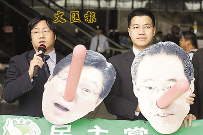 請願代表范國威、陳家偉戴上兩個印上唐英年、馬時亨樣子的面具,稱他們為《木偶奇遇記》的主角,說謊後鼻子變長,並重申各界均已表明反對政府開徵GST,特區政府應撤回有關的諮詢,把精力放在更重要的民生事務上。