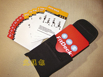 由前美國海軍教頭Phil Black所設計的FitDeck,由一套50張印有圖解及指示的運動咭組成。FitDeck用法簡單,玩者只需將整套運動咭「洗勻」放回海綿套(亦可扣在腰間),抽出一張牌並實行咭上的指定動作,即可在不需要任何器械之下強身健體!