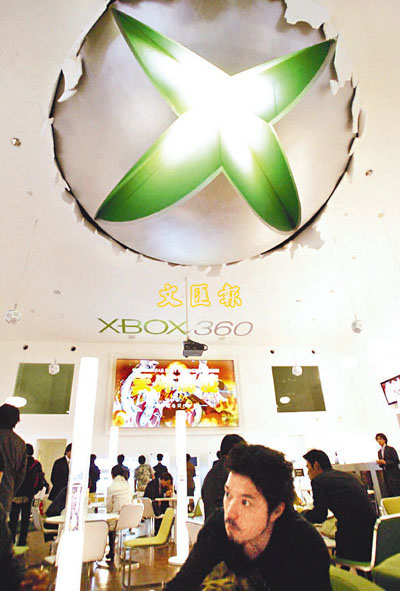 ■減價後的Xbox 360遊戲機在日本的推廣現場。 美聯社