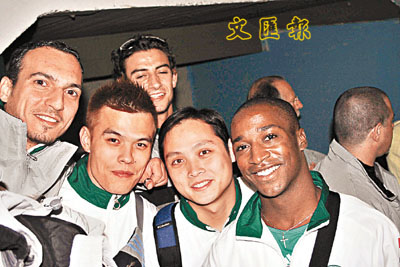 ■中國澳門隊部分球員在開幕式上合影。 新華社