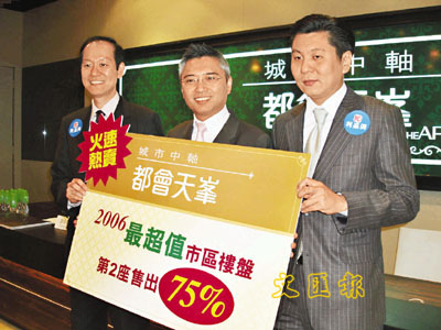■長實副首席營業經理黃思聰(中)公佈雍雅軒第2座銷情。 本報記者周穎 攝