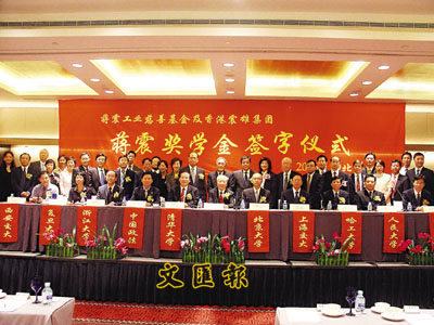 ■蔣震捐出1,400萬元人民幣成立獎學金,資助內地優秀學子,10內地名校代表出席簽字儀式。