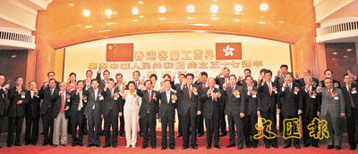 ■曾蔭權、高祀仁、曾憲梓等主持祝酒,賓主舉杯共祝祖國富強昌盛,香港明天更美好! 本報記者鄭群 攝