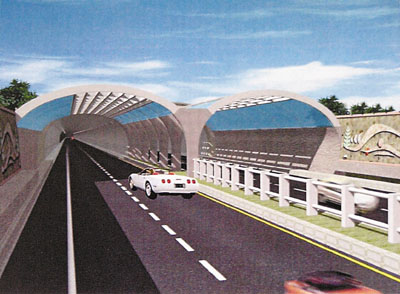 ■廣東省交通廳表示,港珠澳大橋2007年動工的可能性不大。圖為港珠澳大橋的海底隧道出海口效果圖。 資料圖片