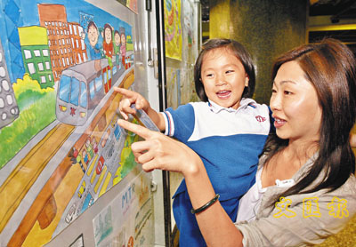 由昨日起地鐵港島沿線包括灣仔等共10車站,已設社區畫廊,展出多位小學生的作品,為地鐵乘客在煩囂中忙裡偷閒,鬆弛神經。 本報記者李志樑 攝