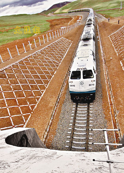 專家指出,青藏鐵路500多公里的凍土地段使用了熱棒技術。熱棒是一根根密封的鋼管,裡面注入氨水。熱棒埋在地下的部分與地面上散熱的部分有一個溫差,溫度升高會讓氨水變成氣體上升,在蒸發過程中吸收土體的熱量,降低凍土的溫度。當然,鐵路專家防範凍土的方法還有許多。青藏鐵路凍土難題的克服並不是一勞永逸的。不過從目前看,「穩定下來的是凍土」。