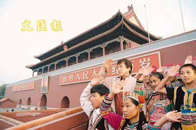 大隊抵達天安門廣場後,在「成龍慈善基金」助養的多名學童悉心打扮的陪同下,目睹全程升旗儀式,成龍和學童們激動地高唱中國國歌,場面令人感動。成龍表示,這是他第一次親臨升旗儀式,而他本人也大感榮幸,尤其在大會和單位方面安排之下,他能站在城牆那一帶位置觀賞儀式(因為以往只有國家領導人才能企在那方),令他大感地位超然和受到厚待。成龍揚言,他本人從未試過這麼感動過,今次也令他眼界大開。