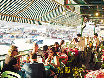 日落時分,在醉人的斜陽下,與友人品嘗海鮮佳餚,確實寫意。