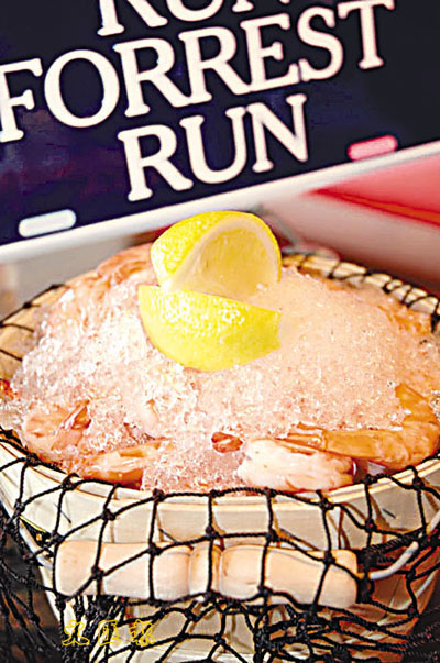 白灼凍蝦大廚Frank說美國的漁夫為了保持蝦的新鮮度,愛以冰粒鋪面,此店把美國的漁村風味搬到香港。這道菜式以濃郁蝦味的白蝦為主角,加入了秘製boil crab粉的沸水煮熟,待涼後鋪上冰粒,味鮮且清。($75)
