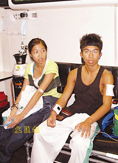 受傷的男子姓陳,22歲,及女子姓羅,20歲。兩人均左手割傷數處流血,經送院敷治後已無礙。而發生玻璃窗碎裂的是九巴雙層巴士,行走旺角至尚德的通宵巴士N298線,車長姓張,42歲。事發時車上載有10餘名乘客。