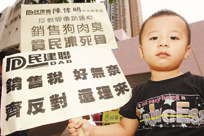 ■在研討會進行前,有團體抗議,反對政府開徵銷售稅。本報記者李志樑 攝