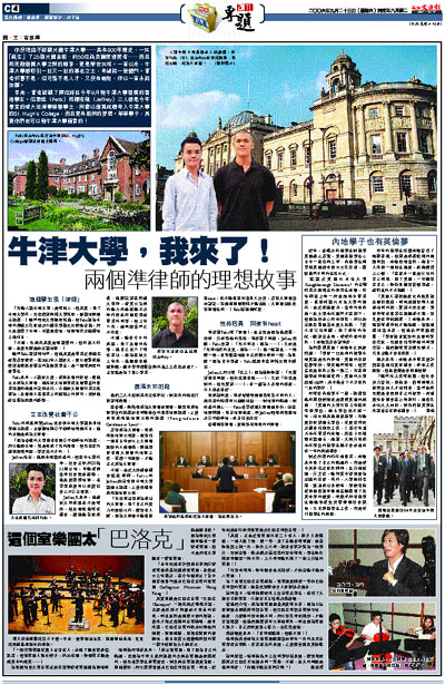 早前,筆者認識了兩位將在今年9月到牛津大學發展的香港學生。伍樂恆(Felix)和譚俊傑(Jeffrey)二人都是今年畢業的城大法律學榮譽學士,同樣以優異成績考入牛津大學的St. Hugh's College,而且更有相同的夢想。莘莘學子,其實你們也可以到牛津大學讀書的!