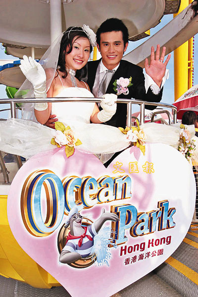 喜歡新奇刺激的,水底婚禮相信夠與眾不同吧!一對新人在海洋館中舉行婚禮,並由館中壯觀及色彩鮮豔的珊瑚魚、及其他海洋生物作見證,無論是新人或是觀禮的親朋戚友,都會感到難忘。「甜蜜快車」的組合則讓新人攜手坐上越礦飛車,在賓客及威威獅令的吶喊歡呼下,向幸福前進!在婚禮中公主王子的扮相見得多,「穿梭古今」的組合,以中國帝皇式婚禮作招徠,份外具噱頭。在仿照北京頤和園傳統建築而興建的金魚大觀園,穿起清朝服飾「拜堂」,最適合喜歡突破傳統框框的準新人。