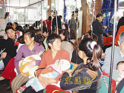 ■目前內地民眾基本醫療保障並不足夠。圖為重慶市某醫院門診樓候診室坐滿輸液的兒童。 資料圖片